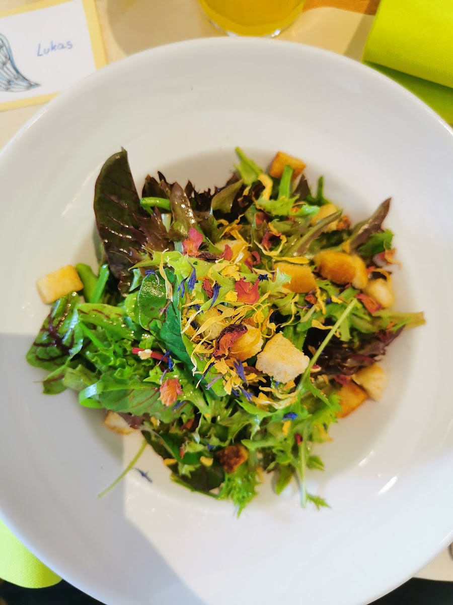 Wow! New favorite restaurant in the Freiburg area. I had the wild mushroom pasta with dates and macadamia nuts and it was amazing! For dessert: lavender parfait with flammed nectarines. So delicious! Their seasonal wine is highly recommended (Jubilee Gutedel). Also, great service and atmosphere